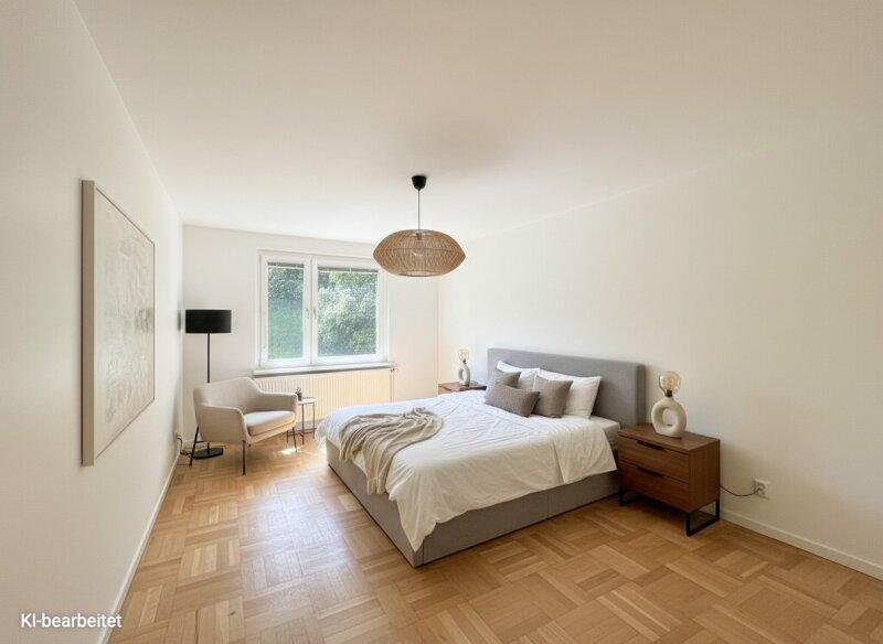 Die dargestellten möblierten Räume sind KI-generierte Visualisierungen und dienen lediglich der Veranschaulichung möglicher Einrichtungskonzepte. Die Möblierung und Sanierung ist nicht im Kaufpreis enthalten.