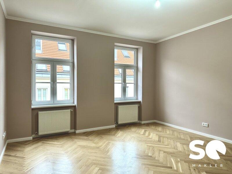 Eine seltene Gelegenheit! In dieser gefragten und zugleich trendigen Wohnlage des 6. Bezirks befindet sich diese außergewöhnlich gut geschnittene Altbauwohnung mit ca. 54 m² Wohnfläche. Sie liegt im dritten Liftstock eines 2011 generalsanierten und bis heute sehr gepflegten Hauses aus der Jahrhundertwende. Hier überzeugt die seltene Kombination aus Altbauflair, modernem Wohnkomfort und durchdachter Raumplanung.