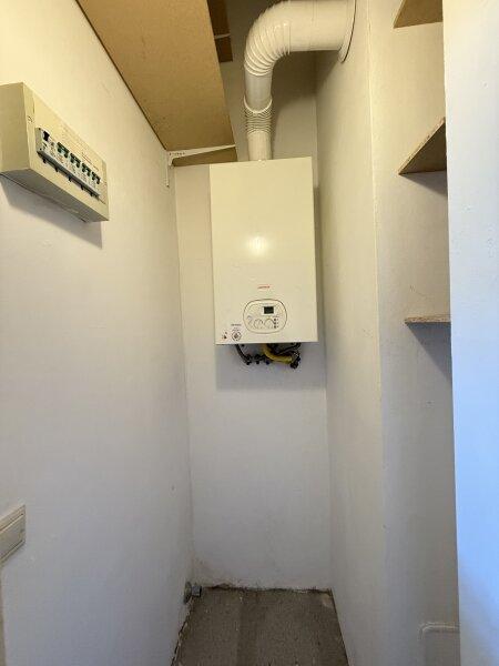 Vorzimmer, getrenntes WC mit Handwaschbecken, Abstellkammer mit Gas - Kombi - Therme, großzügige Wohnküche in Ruhelage, Badezimmer mit Dusche und Waschmaschinen Anschluss getrennt begehbar, Schlafzimmer.