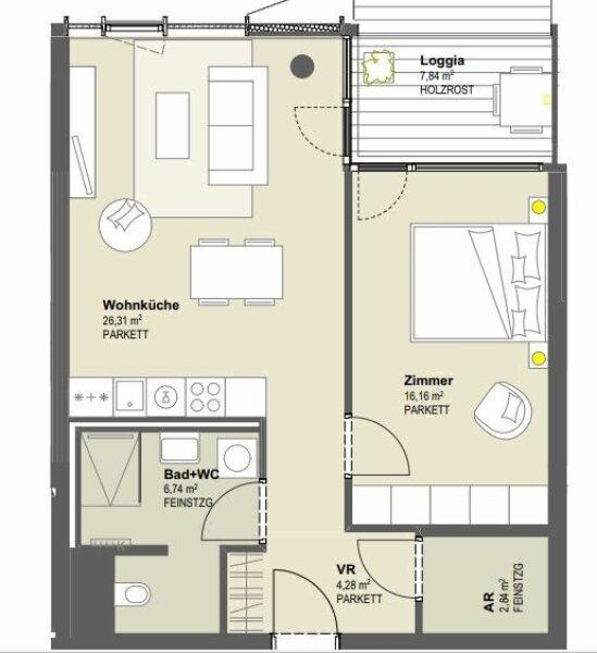 Garagenstellplatz bei Bedarf separat um € 234,-- mntl. extra anmietbar.
