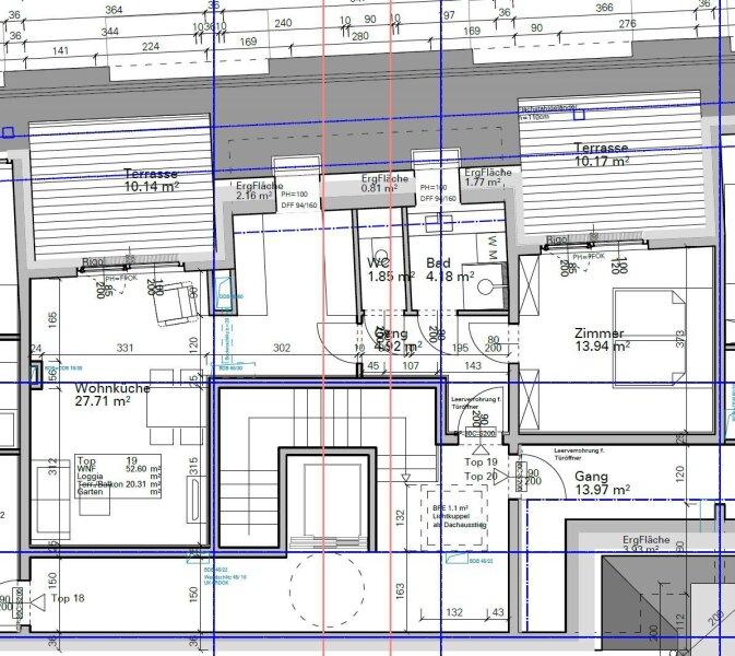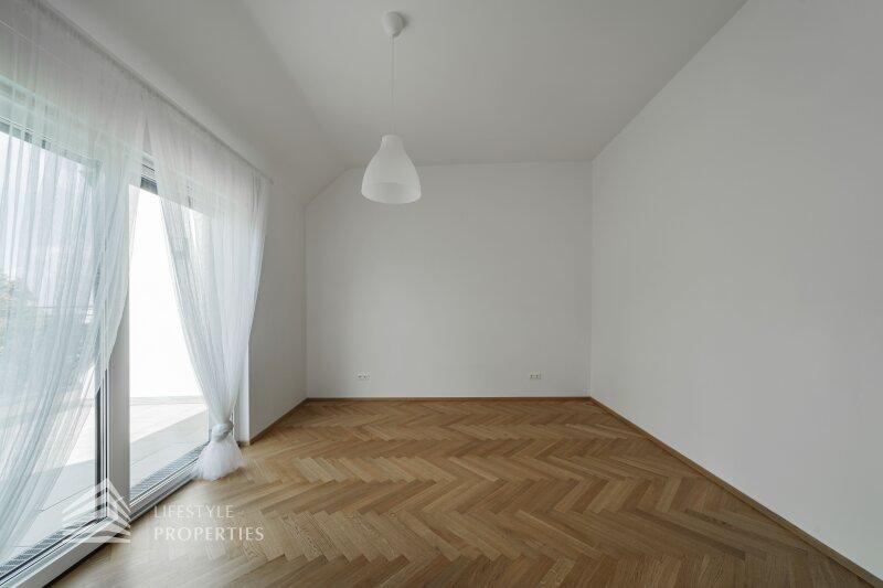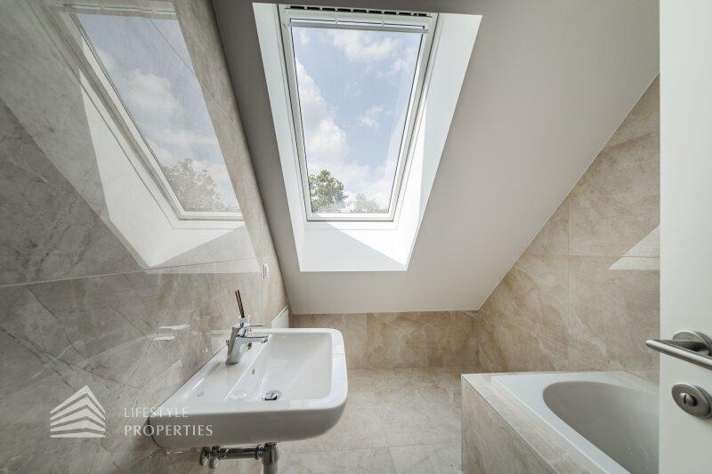 Die Immobilie mit einer Fläche von ca. 53 m² liegt im Dachgeschoss eines 2022 fertiggestellten Neubaus und ist bequen über einen Personenaufzug erreichbar. Beim Betreten der Wohnung gelangen Sie in den charmanten Vorraum, welcher alle Räume der Wohnung perfekt miteinander verbindet. Rechterhand kommen Sie in das mit natürlichen Licht geflutete Schlafzimmer mit eigener Terrasse. Gegenüber gelangen Sie in die ca. 28 m² große Wohnküche, welche aufgrund ihres großflächigen Aufbaus ausreichend Platz für einen separaten Ess- und Wohnbereich bietet. Der Wohnraum hat zudem Zugang zu einer zweiten Terrasse. Mit großzügigen Flächen von je ca. 10 m² werden Ihnen bei der Gestaltung keine Grenzen gesetzt. Ein weiteres Highlight bietet das helle Badezimmer, wo eine Badewanne und der durch ein Dachfenster gegebene Blick in den Himmel für Wohlfühlmomente sorgen. Neben dem Bad liegt das separate WC.