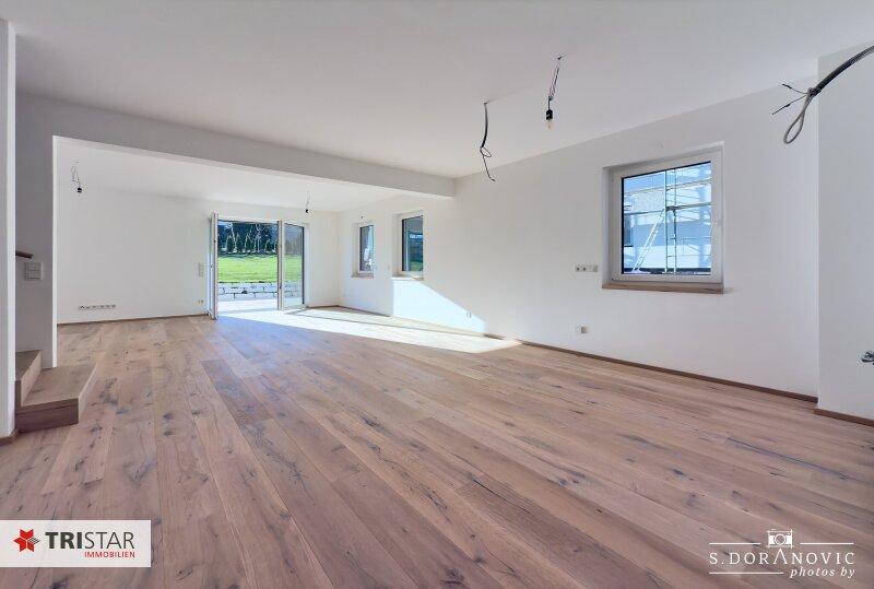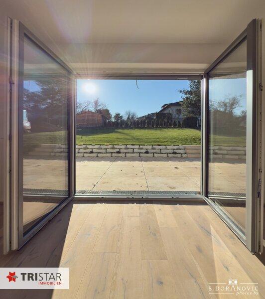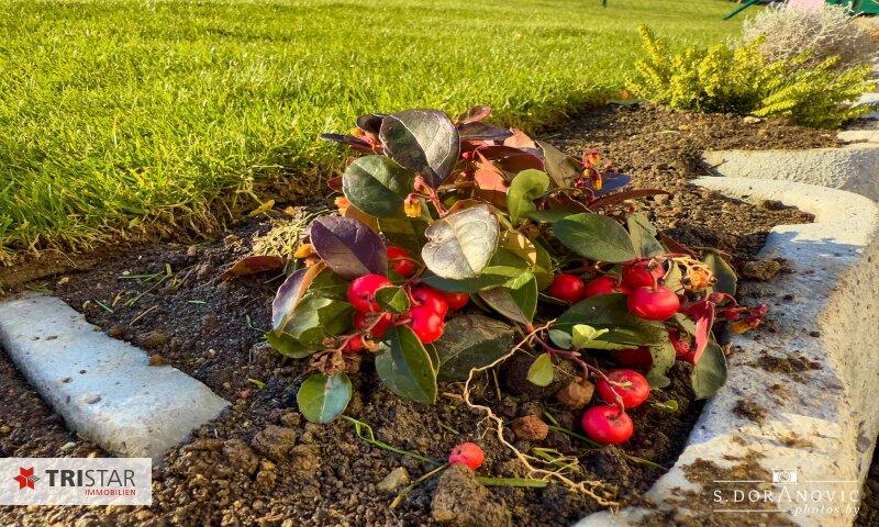 Weiters zählen zur hochwertigen Ausstattung: Eichenparkettböden, keramischer Belag/Feinsteinzeug, Garten mit Rollrasen, etc.