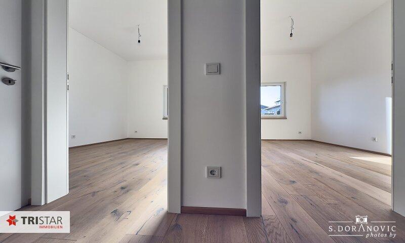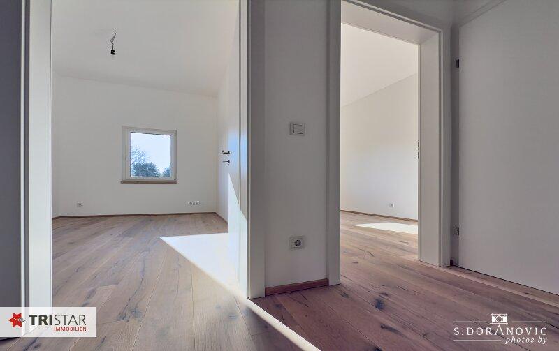 Weiters zählen zur hochwertigen Ausstattung: Eichenparkettböden, keramischer Belag/Feinsteinzeug, Garten mit Rollrasen, etc.