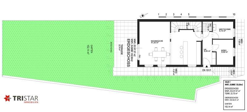 - Garten + Terrasse + Weg (siehe Grundriss): 224,11 m²