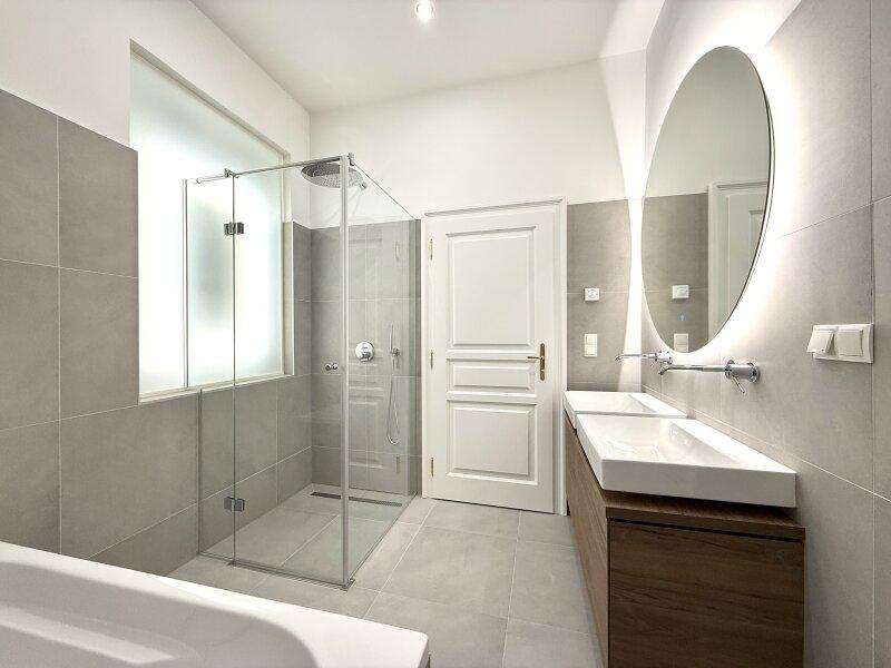 Die hochwertigen Materialien, wie edles Parkett und elegante Fliesen, unterstreichen den Charakter dieser Immobilie. Die Wohnung verfügt über zwei luxuriöse Bäder, ausgestattet mit Badewanne und Dusche, sowie drei separate WCs, die den Komfort für Sie und Ihre Gäste erhöhen.