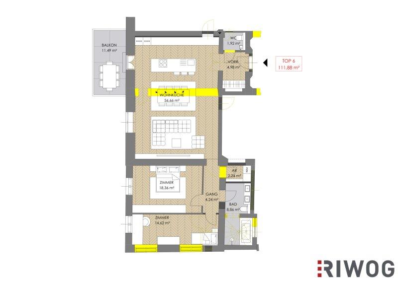 Die Kosten für den Dachbodenausbau inklusive Lift, Kinderwagenraum, Fahrradabstellmöglichkeiten und Einlagerungsräume werden vom Verkäufer getragen.