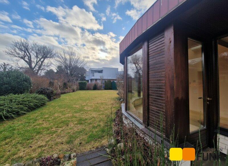 Sie betreten diese überaus attraktive Immobilie über den Vorgarten und den offenen Vorraumbereich, der ausreichend Platz für die Garderobe bietet. Rechter Hand stehen der Haustechnikraum, ein WC mit Handwaschbecken sowie zwei große Abstellräume und eine zusätzliche, begehbare Garderobe zur Verfügung. Das restliche Erdgeschoss verwöhnt mit seiner offenen Grundrissgestaltung: auf etwa 73 m² präsentiert sich ein -durch die großen Fensterflächen- überaus heller Lebensraum mit Küche, Wohnzimmer und Wintergarten. Dieser Bereich öffnet sich zum ebenen und liebevoll gestalteten Garten. Sowohl aus dem Wohnbereich als auch aus dem Wintergarten betreten Sie jeweils auf eine große Terrasse. Jene vor dem Wohnzimmer verfügt zusätzlich über eine neue Markise.
