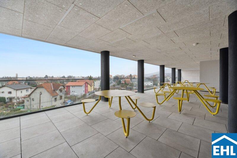 Um auch das Kennenlernen unter den Hausbewohnern zu fördern stehen 8 möblierte Terrassen bereit und laden ebenfalls zum Relaxen ein. Für Ihre Kinder wurde ein weitläufiger Kinderspielplatz errichtet der über eine Rutsche, Hügel und eine Sandkiste verfügt.