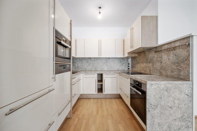 - Der Wohn- Essbereich ist mit einer Küche mit hochwertigen Gärten von Miele und Bora ausgestattet (Induktionsherd, Backofen, Geschirrspüler); die Vormierter haben den freistehenden Kühlschrank wieder mitgenommen. Ein solcher muss daher seitens dem neuen Mieter wieder ergänzt werden.