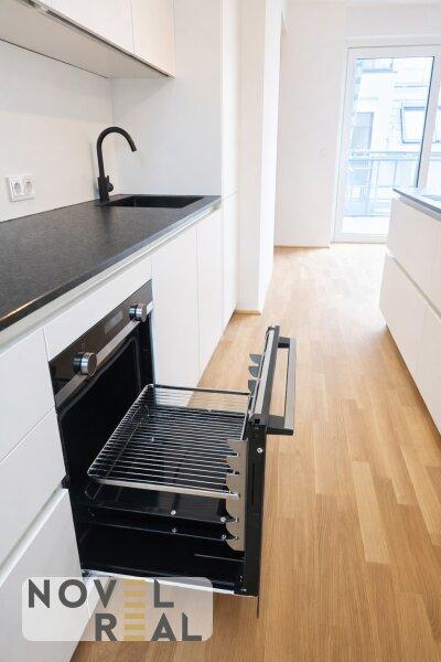 Die offene Wohnküche ist designorientiert gestaltet und lädt zum Wohlfühlen ein, ideal für gesellige Abende oder entspannte Stunden. Ein direkter Zugang führt hinaus auf die große Terrasse, die einen beeindruckenden Blick über Wien eröffnet und als exklusiver Rückzugsort mitten in der Stadt dient.