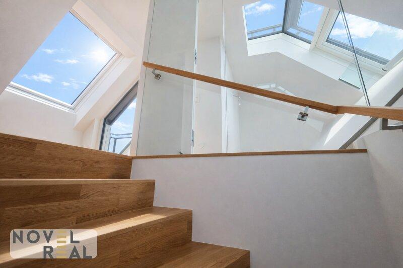 • Wohnräume: Großzügige, lichtdurchflutete Zimmer mit edlen Holzböden und weitläufigen Fensterfronten schaffen eine Atmosphäre von Klarheit und Eleganz. Die modernen Dachschrägen verleihen den Räumen Charakter und Behaglichkeit.