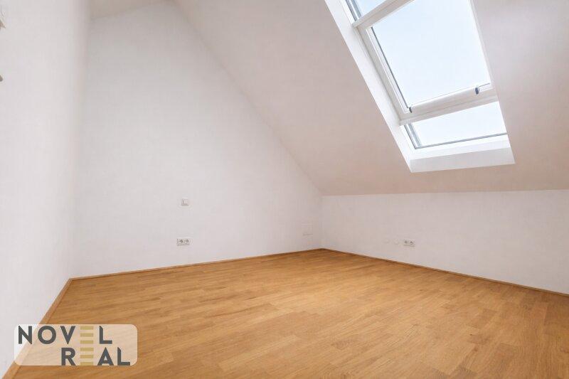Großzügige Wohnräume mit edlen Holzböden und weitläufigen Fensterfronten schaffen eine helle und einladende Atmosphäre, während die modernen Dachschrägen den Räumen Charakter und Behaglichkeit verleihen.