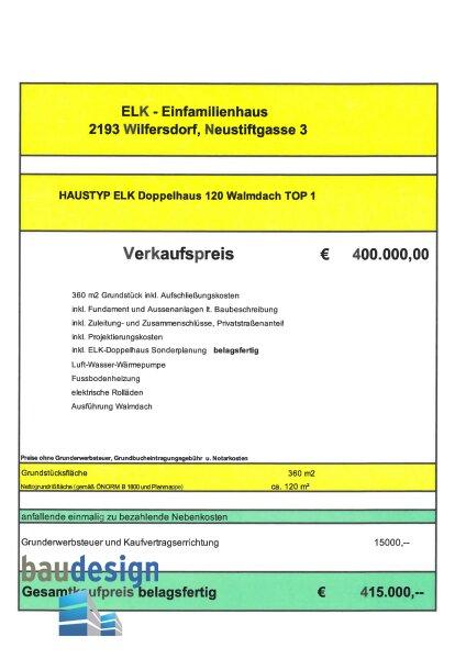 TOP ! Neubau Erstbezug in Wilfersdorf bei Mistelbach! Modernes ELK-Doppelhaus in schöner Siedlungslage - Provisionsfrei für den Käufer ! - Objektnr. 5613671
