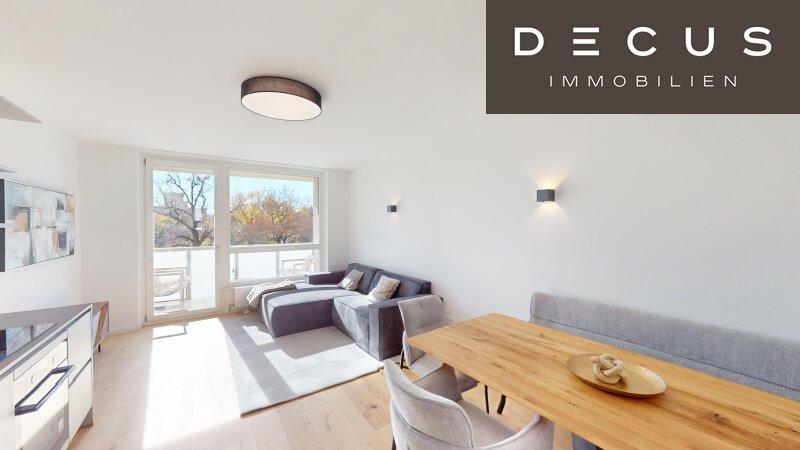 Die Designerküche ist voll ausgestattet inklusive Induktionsherd und hochwertigen Geräten und fügt sich harmonisch in den offenen Wohnbereich ein. Wohnzimmer sowie ein Schlafzimmer sind bereits stilvoll möbliert, die Einrichtung ist im Kaufpreis inkludiert.