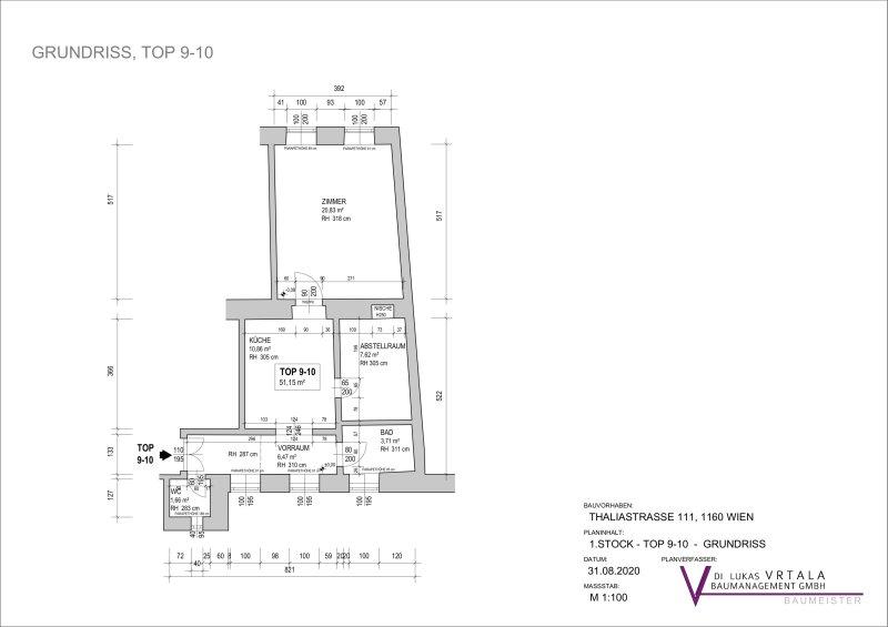 Vorzimmer, WC mit Fenster getrennt begehbar, Badezimmer mit Dusche und Waschmaschinen Anschluss mit Fenster, Küche, Wohnzimmer, Kabinett (mit Lichteinlass ohne Fenster).