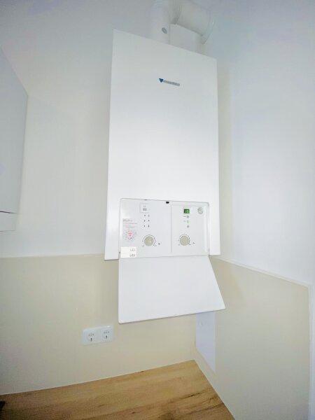 Geheizt wird mit einer neuwertigen Gas-Kombi-Therme. (Junkers).