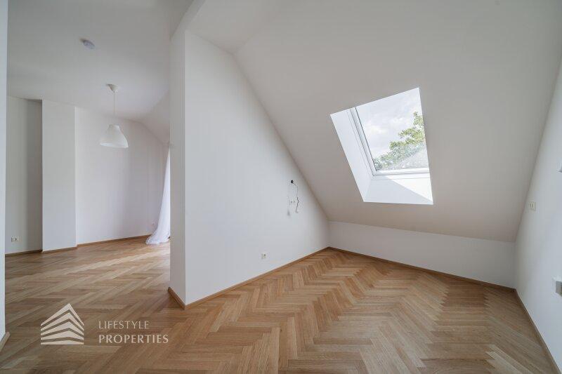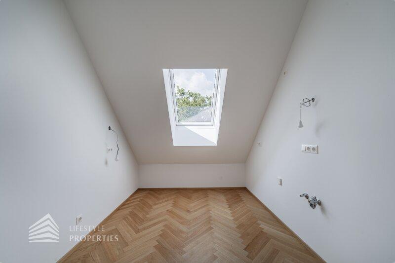 Die Immobilie mit einer Fläche von ca. 53 m² liegt im Dachgeschoss eines 2022 fertiggestellten Neubaus und ist bequen über einen Personenaufzug erreichbar. Beim Betreten der Wohnung gelangen Sie in den charmanten Vorraum, welcher alle Räume der Wohnung perfekt miteinander verbindet. Rechterhand kommen Sie in das mit natürlichen Licht geflutete Schlafzimmer mit eigener Terrasse. Gegenüber gelangen Sie in die ca. 28 m² große Wohnküche, welche aufgrund ihres großflächigen Aufbaus ausreichend Platz für einen separaten Ess- und Wohnbereich bietet. Der Wohnraum hat zudem Zugang zu einer zweiten Terrasse. Mit großzügigen Flächen von je ca. 10 m² werden Ihnen bei der Gestaltung keine Grenzen gesetzt. Ein weiteres Highlight bietet das helle Badezimmer, wo eine Badewanne und der durch ein Dachfenster gegebene Blick in den Himmel für Wohlfühlmomente sorgen. Neben dem Bad liegt das separate WC.