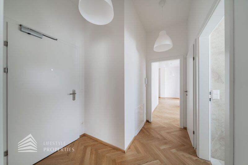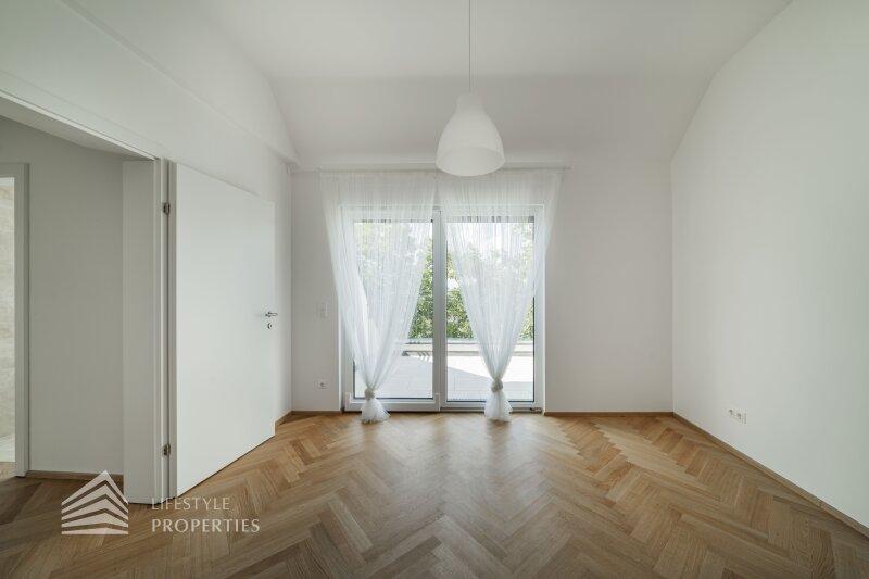 Die Haupträume der Wohnung sind mit hochwertigem Fischgrätparkett ausgekleidet, welcher eine wohlfühlende Wohnatmosphäre schafft. In den Nassräumen sind moderne Fliesen verlegt. Das Haus verfügt über eine Wärmepumpe, eine Photovoltaikanlage sowie elektrisch bedienbare Außenrollos. Der Wohnung ist ein Kellerabteil mit ca. 1,60 m² zugeordnet. Es besteht außerdem die Möglichkeit einen KFZ-Stellplatz in der hauseigenen Tiefgarage zu € 29.000,00 zu erwerben.