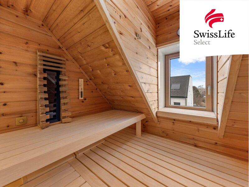 + Zirbenholz Sauna im Badezimmer integriert