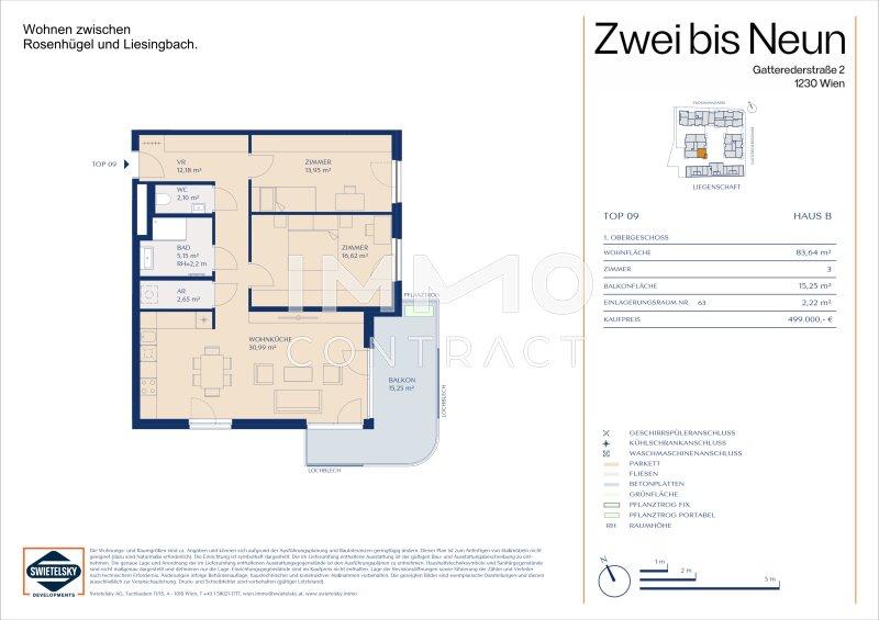 Für Komfort sorgen eine Tiefgarage mit direkten Liftfahrten zu den Gebäuden, Stellplätze für PKWs und Motorräder (teilweise mit E-Ladestationen) sowie moderne Gemeinschaftsräume wie ein Paketraum, Fahrrad- und Kinderwagenabstellräume. Die großzügig gestalteten Außenflächen mit Spielplätzen für verschiedene Altersgruppen laden zum Entspannen, Spielen und Verweilen ein.