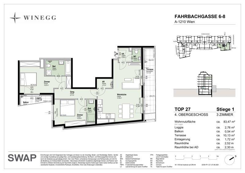 Die 3-Zimmer-Wohnung mit ca. 81 m² Wohnnutzfläche sowie einer großzügigen Terrasse und einer Loggia befindet sich im 4. Obergeschoss.