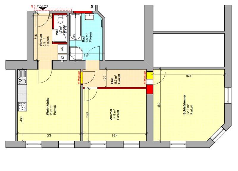 Die Wohnung liegt im 2. Stock eines gepflegten Altbaus (ohne Lift, Dachgeschossausbau geplant).