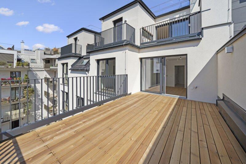 Zusätzlich stehen auf dieser Ebene ein weiteres WC sowie zwei weitere Terrassen zur Verfügung (ca. 7,70 m² und 3,58 m²) perfekt für Dinner im Freien, urbanes Garteln oder entspannte Abende mit Blick über die Dächer.
