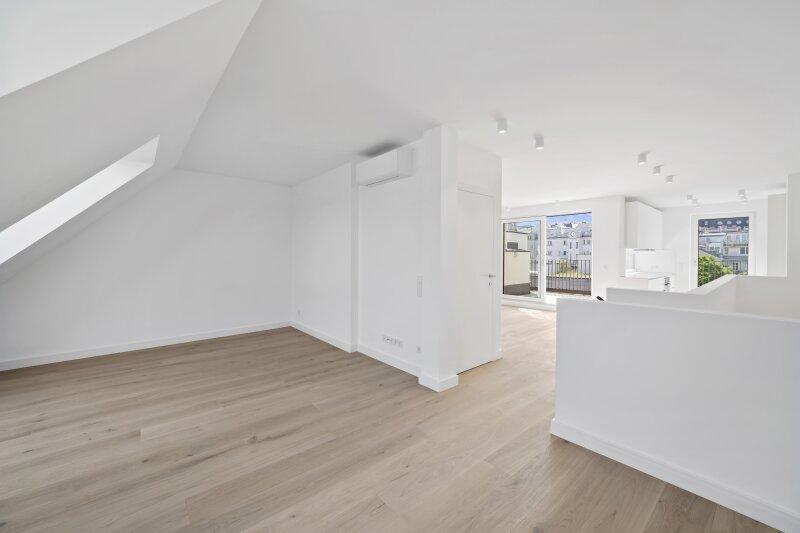 Willkommen in TOP 26 einer außergewöhnlichen Dachgeschoss-Maisonette im 4. Stock + Dachgeschoss, die modernes Neubaugefühl mit großzügigem Raumangebot und beeindruckenden Freiflächen verbindet. Die Wohnung wird erst zum zweiten Mal nach Errichtung bewohnt und präsentiert sich entsprechend nahezu wie im Erstbezug: klar, gepflegt, hochwertig.