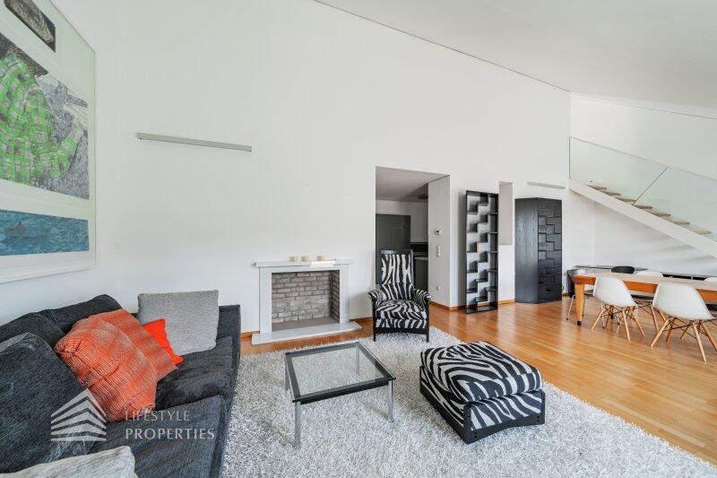 Die Wohnung befindet sich im 1. und 2. Dachgeschoss eines um das Jahr 2002 durchgeführten Dachausbaus. Sie kann entspannt über einen Personenaufzug erreicht werden. Die Wohnfläche von ca. 85 m² teilt sich auf in ein Schlafzimmer, ein Wohnzimmer, eine Küche, einen Vorraum, ein Badezimmer mit WC und ein weiteres Badezimmer, sowie ein Gäste-WC. Zusätzlich dazu bietet die Wohnung zwei große Terrassen und als absolutes Highlight eine unglaubliche Dachterrasse. Die Haupträume sind mit hochwertigem Parkett ausgekleidet, in den Nassräumen wurden Fliesen verlegt. Beheizt wird die Wohnung mittels Gasetagenheizung. Gegen einen Aufpreis können Sie das Mobiliar mit erwerben. Der Rücklagenstand beläuft sich per 15.07.2021 auf rund € 57.000,--.
