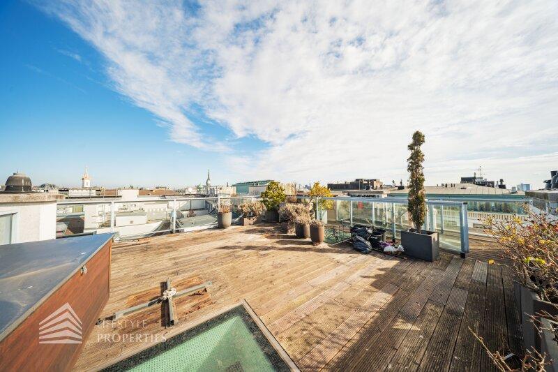 Zum Verkauf gelangt ein atemberaubendes 6-Zimmer Penthouse mit einer Terrasse sowie einem begehbaren Flachdach in bester Lage des 1. Wiener Gemeindebezirks.