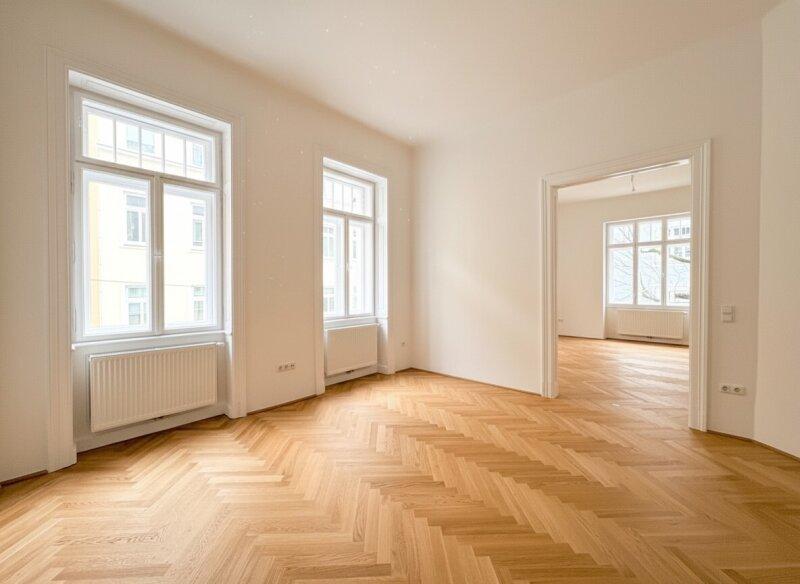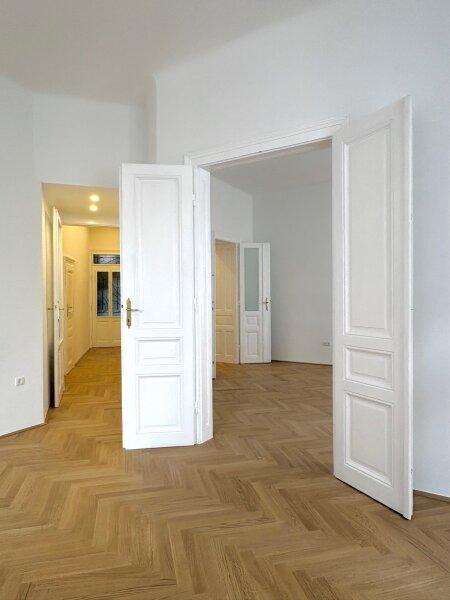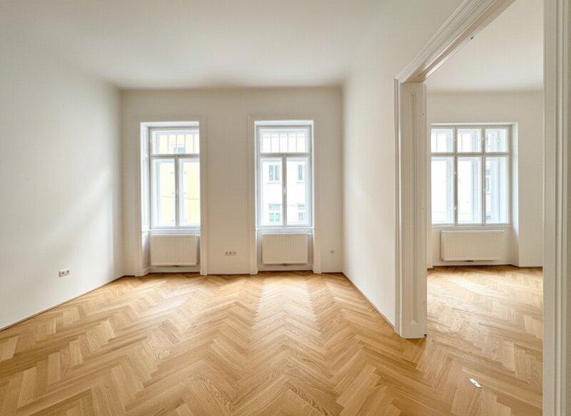 Flügeltüren, Fischgrät-Parkett und überdurchschnittlich hohe Räume im gutbürgerlichen 18. Bezirk - hier schlagen die Herzen von AltbauliebhaberInnen in der Sekunde höher! Die soeben frisch sanierte 2-Zimmer-Wohnung in einem klassischen Altbau aus dem Jahre 1904 liegt im 1. Stock mit Hochparterre, ein Lift ist gerade in Planung. Sie ist hell und wurde mit viel Liebe aufwändig und vollständig saniert und bietet modernen Wohnkomfort in altehrwürdigen Mauern. Bei der Sanierung wurde großes Augenmerk darauf gelegt, Altes zu erhalten und mit Neuem so zu ergänzen, dass sich ein harmonisches Ganzes ergibt, was man beim Betreten der Wohnung sofort spürt. Die wunderschönen großen Holzkastenfenster und originalen Flügeltüren wurden alle erhalten und neu in Stand gesetzt, was der Wohnung ein unvergleichlich schönes und großzügiges Atelier-Flair verleiht!