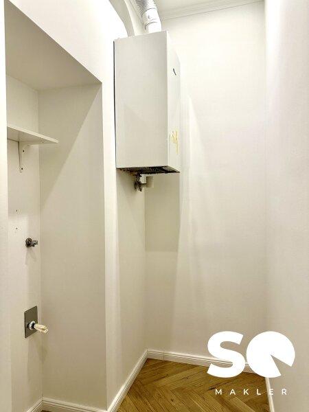 einen zusätzlichen gut nutzbaren Abstellraum in dem Waschmaschine und Therme elegant verborgen werden können.(ca. 2,8 m²),