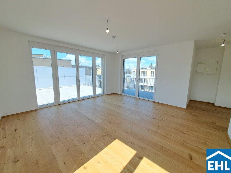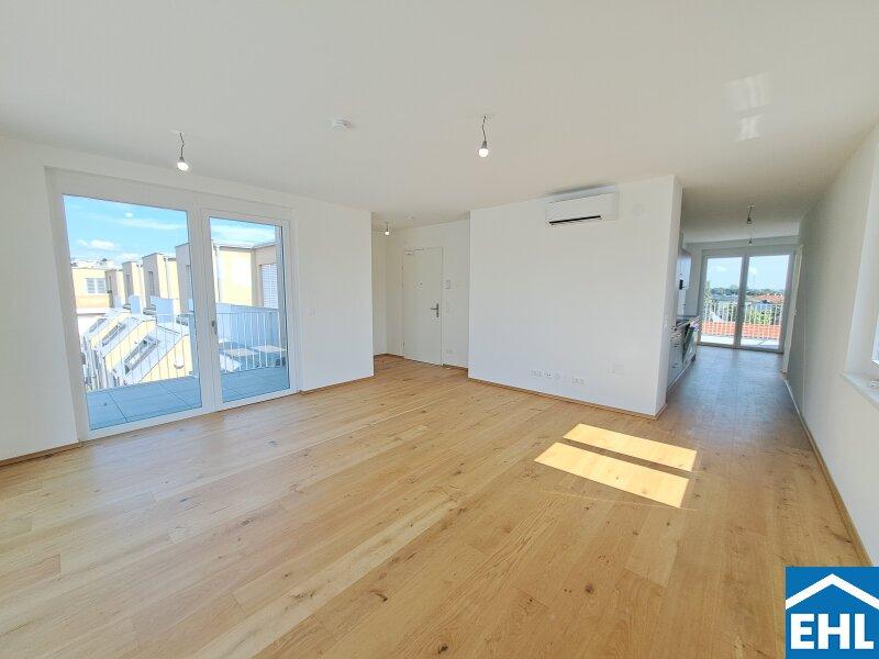 Hier stehen 83 attraktive, bereits bezugsfertige Wohnungen, umgeben von großzügigen Freiflächen, zum Verkauf. Ob mit einem gemütlichen Eigengarten, Balkon oder Terrasse diese neue Wohnhausanlage bietet für jeden Wunsch die perfekte Außenfläche.