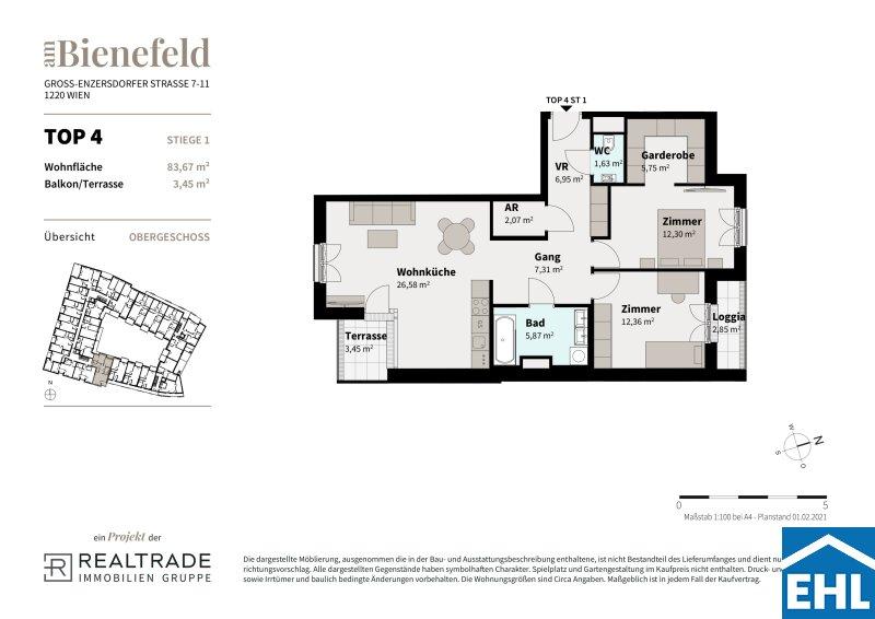 Hier stehen 83 attraktive, bereits bezugsfertige Wohnungen, umgeben von großzügigen Freiflächen, zum Verkauf. Ob mit einem gemütlichen Eigengarten, Balkon oder Terrasse diese neue Wohnhausanlage bietet für jeden Wunsch die perfekte Außenfläche.