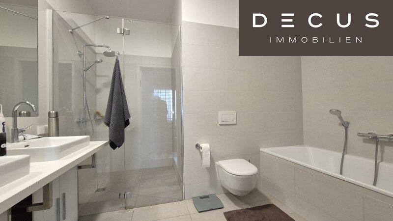 Zwei großzügige Badezimmer, ausgestattet mit Badewanne, Dusche und WC