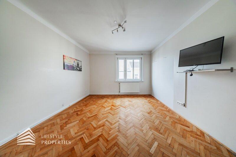 Die Wohnräume sind mit einem Parkettboden ausgestattet und die Nassräume sind verfliest.
