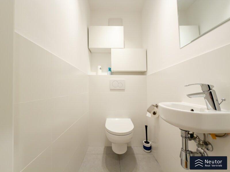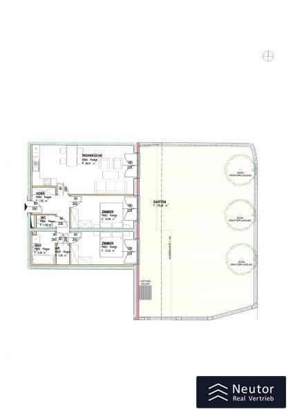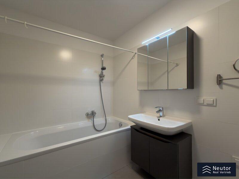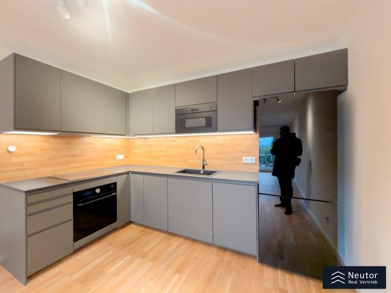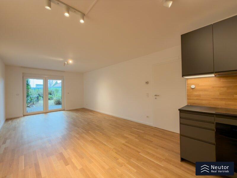 Diese hochwertige Erdgeschosswohnung in einem modernen Neubau vereint stilvolles Design mit einer praktischen und familienfreundlichen Raumaufteilung. Bereits beim Betreten der Wohnung empfängt Sie ein großzügiger Vorraum, der dank seines durchdachten Schnitts ausreichend Platz für eine Garderobe oder zusätzliche Stauraumlösungen bietet. So entsteht ein einladender Eingangsbereich, der sowohl funktional als auch optisch überzeugt. Gleich rechts von der Eingangstür befindet sich das separate Gäste-WC mit Handwaschbecken ideal für Besucher und perfekt in den Grundriss integriert. Das zentral gelegene Badezimmer präsentiert sich hell und modern, ausgestattet mit einer komfortablen Badewanne, hochwertigen Sanitäranlagen sowie einem praktischen Waschmaschinenanschluss. Hier lassen sich entspannte Wellness-Momente genießen, während gleichzeitig alle alltäglichen Bedürfnisse abgedeckt werden. Der offene Wohnbereich mit Einbauküche bildet das Herzstück der Wohnung. Dank großer Fensterflächen wird der Raum mit natürlichem Licht durchflutet, was eine warme und einladende Atmosphäre schafft. Die Wohnküche bietet ausreichend Platz für einen Essbereich sowie eine gemütliche Lounge-Ecke, wodurch ein harmonisches Gesamtbild entsteht. Ein absolutes Highlight ist der großzügige Garten. Er erweitert den Wohnraum ins Freie und bietet zahlreiche Gestaltungsmöglichkeiten: ob als grüne Oase zum Entspannen, als Spielbereich für Kinder oder als stilvoller Outdoor-Bereich für Sommerabende. Diese Erdgeschosswohnung zeichnet sich durch ihre moderne Bauweise, hochwertige Materialien und eine ideale Raumaufteilung aus. Sie ist perfekt für Singles, Paare oder kleine Familien geeignet, die Wert auf Komfort, Wohnqualität und einen eigenen Garten legen. Hier finden Sie ein Zuhause, das Funktionalität, Ästhetik und Lebensqualität perfekt vereint.