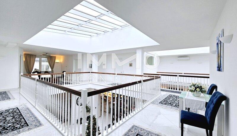Schon beim Eintreten wird klar - dieses Haus ist etwas Besonderes. Großzügige Glasflächen, Lichtkuppeln und eine offen geführte Galerie lassen Tageslicht aus allen Richtungen einströmen und schaffen eine beeindruckende, fast schwerelose Atmosphäre.