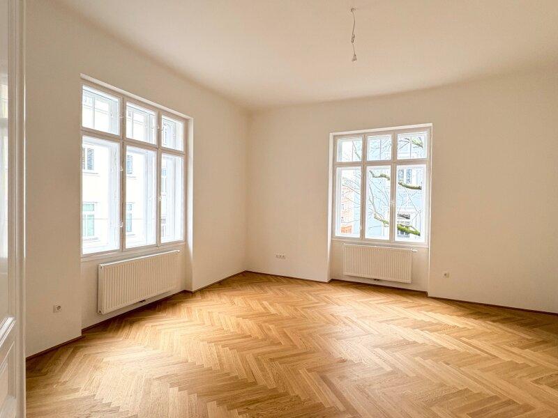 Der Charme dieser wunderschönen Altbauwohnung offenbart sich sofort, wenn man sie durch die original erhaltene Eingangstür betritt. Ein außergewöhnlicher, aber umso gefälligerer Grundriss wurde hier geschaffen, weit weg von einer seelenlosen 08/15-Raumaufteilung. Mit insgesamt knapp 70m² Wohnfläche ist die Wohnung äußerst großzügig. Das Vorzimmer besticht bereits durch ausreichend Platz und die vielen schönen alten Türen, die von hier in die weiteren Räume führen. Sowohl Bad als auch WC wurden bei der Generalsanierung vollständig erneuert und geschmackvoll und zeitlos mit grauen und weißen großflächigen Fliesen und hochwertiger Keramik ausgestattet. Gleich 2 getrennte Abstellräume - einer mit Waschmaschinenanschluss - sind zum Verstauen von Haushaltsgerät gedacht. Das Highlight der Wohnung sind die beiden prächtigen Wohnräume mit ihren großen Atelier-Fenstern und dem schönen Blick in den begrünten Hof. Ein Zimmer ist als Wohnküche gedacht, hier sind die Anschlüsse bereits vorbereitet und man kann eine Küche ganz nach seinen Vorstellungen verwirklichen. Das Schlafzimmer ist ebenfalls sehr hell und mit 22m² überdurchschnittlich großzügig. Beheizt wird die Wohnung mittels Gas-Etagenheizung.