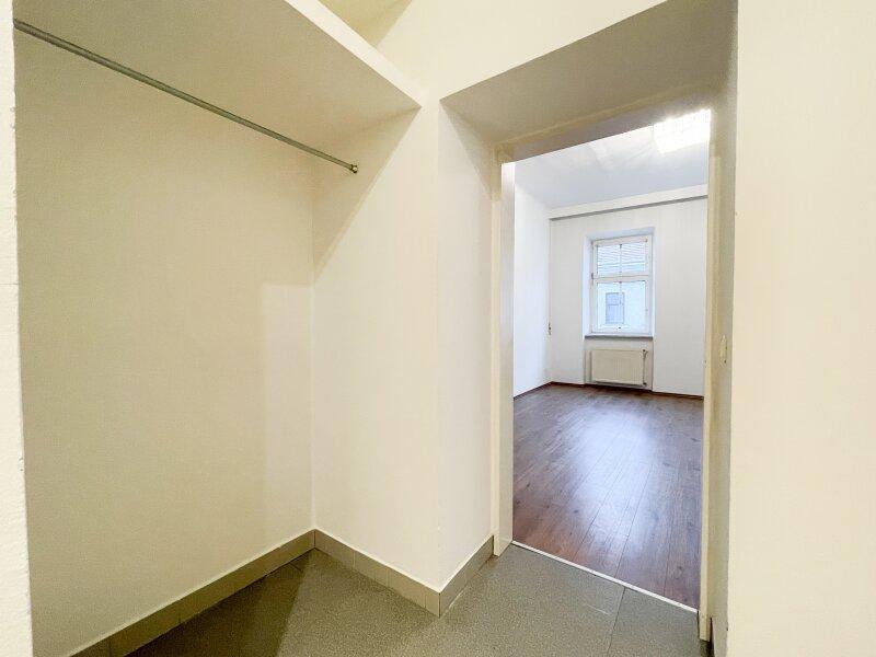 Bereits beim Betreten überzeugt der einladende Vorraum mit einer praktischen Nische, die sich ideal als Garderobe nutzen lässt. Die separate, geräumige Küche mit öffenbarem Fenster zum Gang bietet vielfältige Gestaltungsmöglichkeiten: Ob gemütlicher Essplatz oder erweiterte Küchenzeile hier ist ausreichend Raum für individuelle Wohnideen.