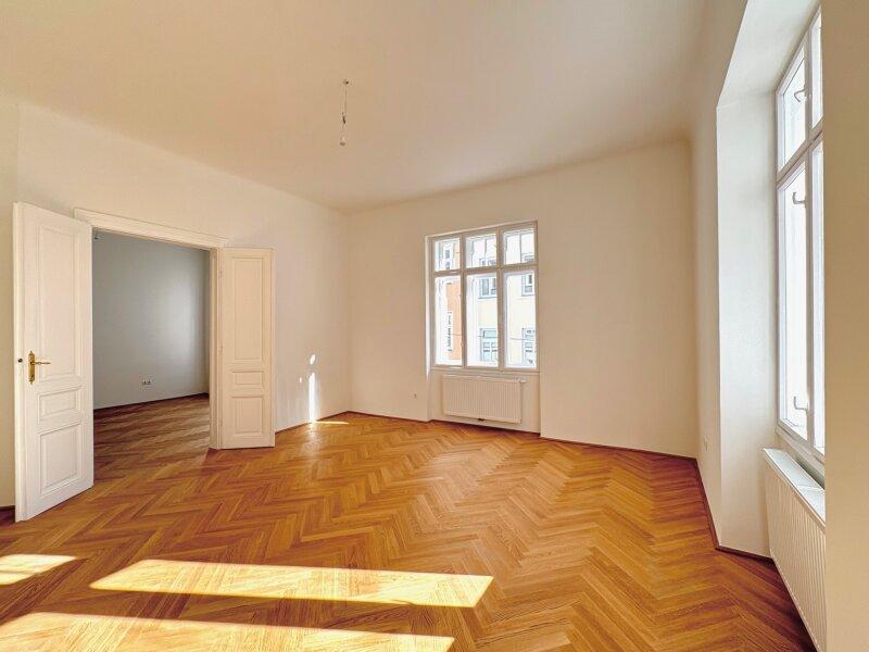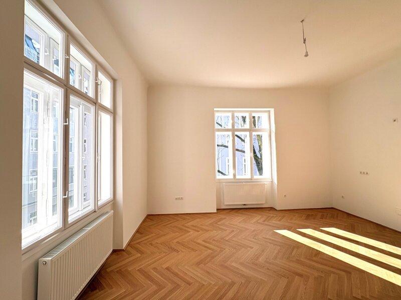 Flügeltüren, Fischgrät-Parkett und überdurchschnittlich hohe Räume im gutbürgerlichen 18. Bezirk - hier schlagen die Herzen von AltbauliebhaberInnen in der Sekunde höher! Die soeben frisch sanierte 2-Zimmer-Wohnung in einem klassischen Altbau aus dem Jahre 1904 liegt im 1. Stock mit Hochparterre, ein Lift ist gerade in Planung. Sie ist hell und wurde mit viel Liebe aufwändig und vollständig saniert und bietet modernen Wohnkomfort in altehrwürdigen Mauern. Bei der Sanierung wurde großes Augenmerk darauf gelegt, Altes zu erhalten und mit Neuem so zu ergänzen, dass sich ein harmonisches Ganzes ergibt, was man beim Betreten der Wohnung sofort spürt. Die wunderschönen großen Holzkastenfenster und originalen Flügeltüren wurden alle erhalten und neu in Stand gesetzt, was der Wohnung ein unvergleichlich schönes und großzügiges Atelier-Flair verleiht!