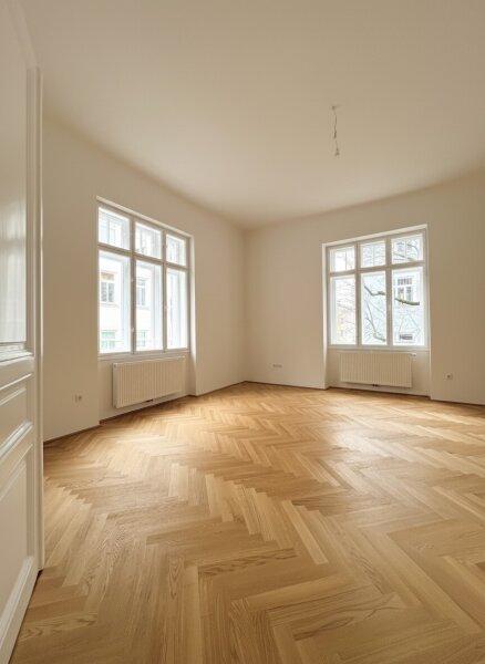 Der Charme dieser wunderschönen Altbauwohnung offenbart sich sofort, wenn man sie durch die original erhaltene Eingangstür betritt. Ein außergewöhnlicher, aber umso gefälligerer Grundriss wurde hier geschaffen, weit weg von einer seelenlosen 08/15-Raumaufteilung. Mit insgesamt knapp 70m² Wohnfläche ist die Wohnung äußerst großzügig. Das Vorzimmer besticht bereits durch ausreichend Platz und die vielen schönen alten Türen, die von hier in die weiteren Räume führen. Sowohl Bad als auch WC wurden bei der Generalsanierung vollständig erneuert und geschmackvoll und zeitlos mit grauen und weißen großflächigen Fliesen und hochwertiger Keramik ausgestattet. Gleich 2 getrennte Abstellräume - einer mit Waschmaschinenanschluss - sind zum Verstauen von Haushaltsgerät gedacht. Das Highlight der Wohnung sind die beiden prächtigen Wohnräume mit ihren großen Atelier-Fenstern und dem schönen Blick in den begrünten Hof. Ein Zimmer ist als Wohnküche gedacht, hier sind die Anschlüsse bereits vorbereitet und man kann eine Küche ganz nach seinen Vorstellungen verwirklichen. Das Schlafzimmer ist ebenfalls sehr hell und mit 22m² überdurchschnittlich großzügig. Beheizt wird die Wohnung mittels Gas-Etagenheizung.
