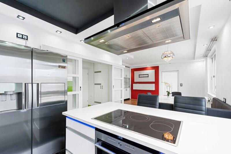 Wohn-Esszimmer mit moderner, geräumiger Küche (inkl. aller Geräte und großem Kühl-Gefrierschrank)