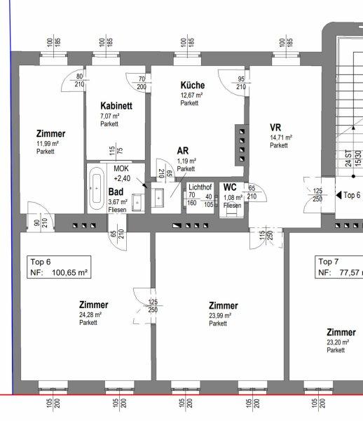Das Objekt liegt im 3. Stock (ohne Aufzug) eines repräsentativen Stilaltbaus mit gegliederter Fassade. Die Liegenschaft strahlt historischen Charme aus und befindet sich in gutem Erhaltungszustand.