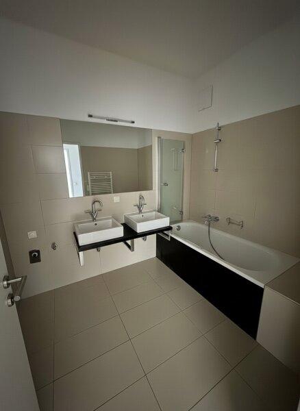 - Badezimmer mit Badewanne und Doppelwaschbecken
