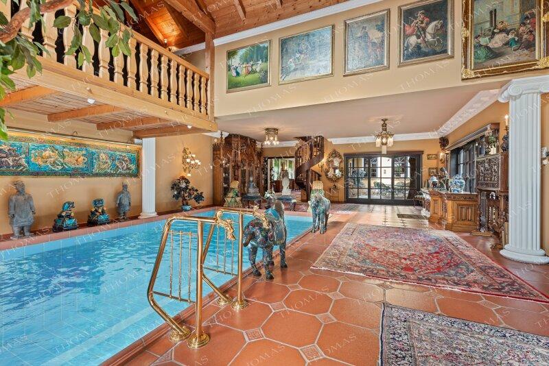Der spektakuläre Zubau begeistert mit beheizbarem Indoor-Pool, Sauna, Dampfbad, Kaminlounge und einer Galerie perfekt für Fitness oder Entspannung.