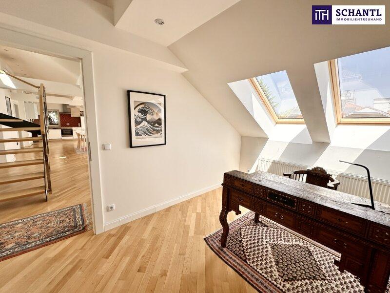 Das Dachgeschoss verfügt bereits über einen direkten Liftzugang sowie einen Zugang über das Stiegenhaus; ein weiterer separater Zugang über das bestehende Stiegenhaus ließe sich bei Bedarf unkompliziert realisieren eine architektonisch elegante Möglichkeit, die Einheit bei Bedarf in zwei separate Wohnungen zu teilen