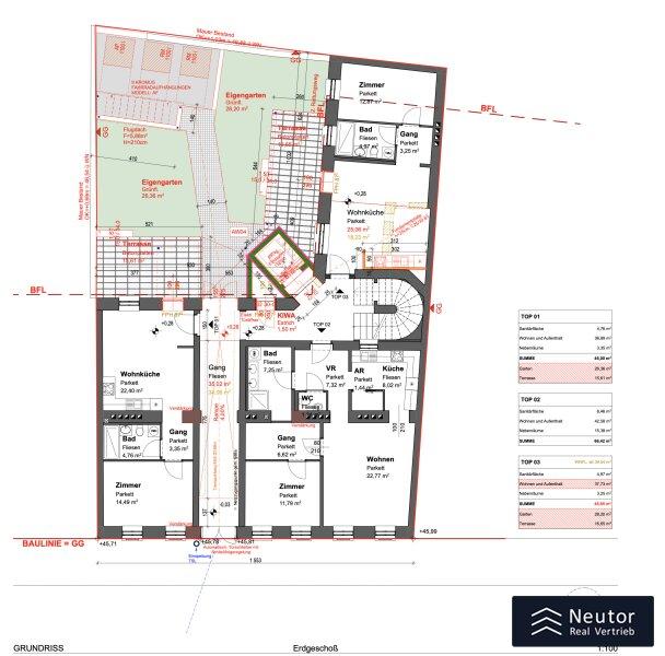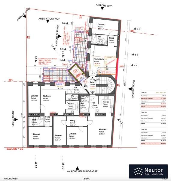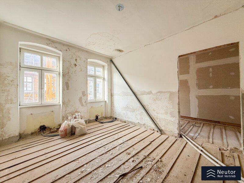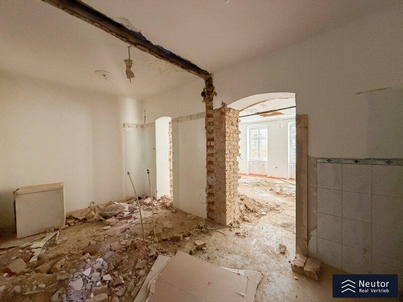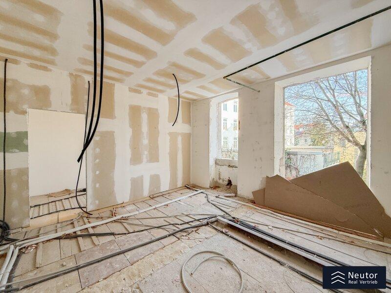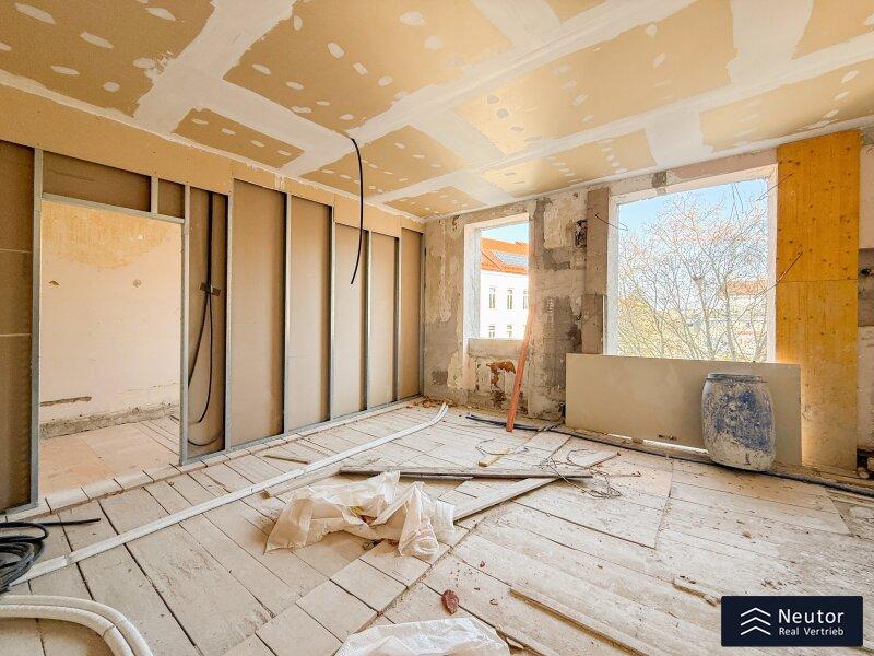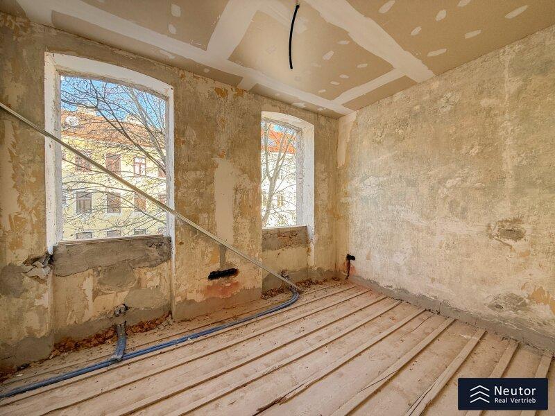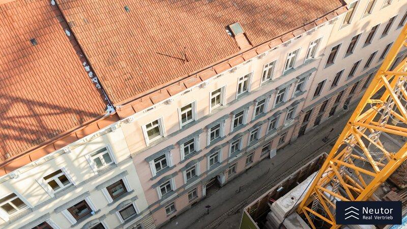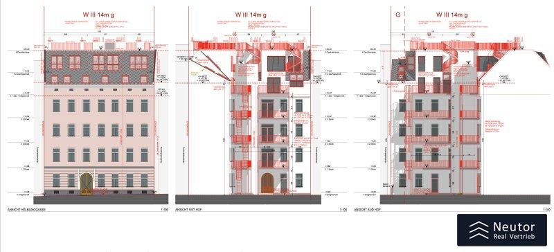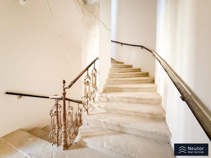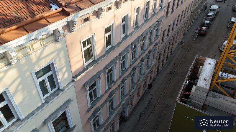 Das historische Zinshaus mit Bauklasse III befindet sich in hervorragender Lage und wurde ingeschlossener Bauweise errichtet. Für den DG-Ausbau sowie den Umbau der Regelgeschoße und eine Neugestaltung der Außenanlagen, liegt eine Baubewilligung nach §70a der Wiener Bauordnung vor. Im Zuge des Dachgeschoßausbaus ist straßenseitig eine Fundamentplatte zur Ertüchtigung herzustellen. Weitere statische Maßnahmen finden sich in der bereits bewilligten Vorstatik. In den 4 Regelgeschoßen befinden sich jeweils 3 kompakt geschnittene Wohneinheiten, wobei die beiden hofseitigen Wohnungen im EG mit Gartenfläche und in den darüberliegende Stockwerken mit Balkon geplant und bewilligt sind. Im Dachgeschoss sollen vier Wohneinheiten entstehen, von denen eine (Top16) eingeschoßig mit Balkon, und 3 (Top 13,14 &15) als Maisonett mit großzügigen Terrassen ausgestaltet sind.