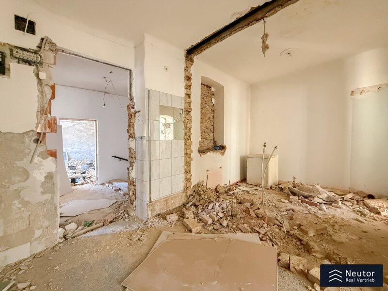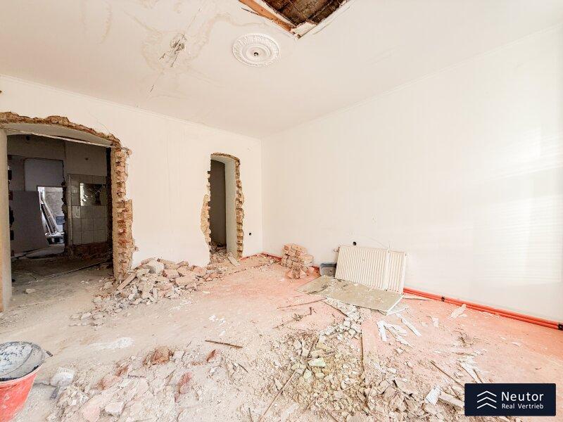 Die angefangenen Arbeiten wurden vom vormaligen Eigentümer durchgeführt und stehen mit dem aktuellen Verkäufer in keinem Zusammenhang. Derzeit finden am Haus keine Arbeiten statt.