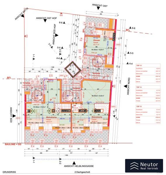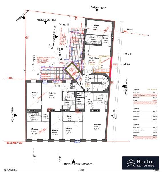 WNFL: ca. 789,41 m² inkl. Gewichtungen der Außenflächen sowie der Lichthofüberbauung im Hoftrakt, welche bewilligt sind
